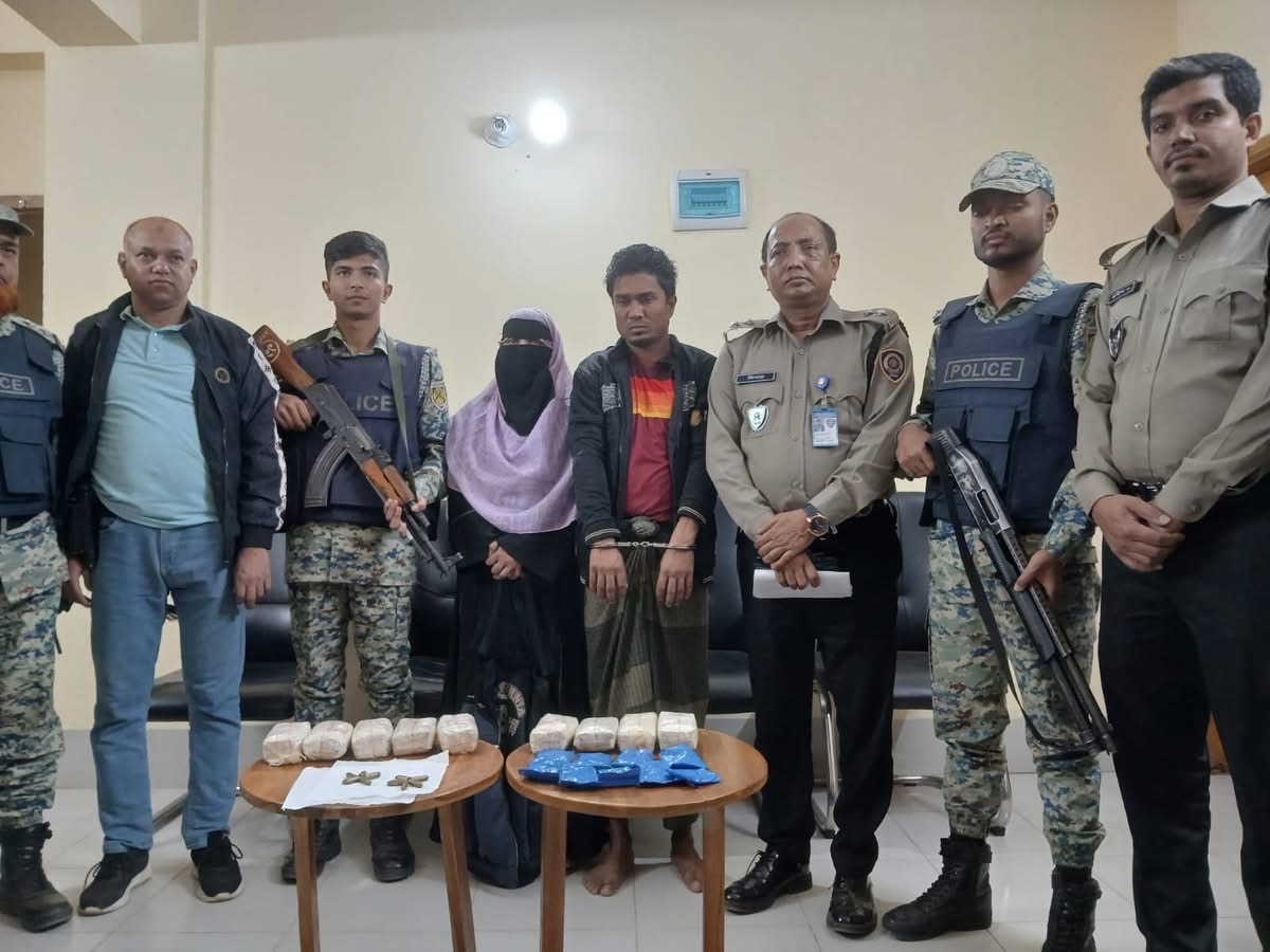 এ সময় ২০,০০০ পিস ইয়াবা ও ১০ রাউন্ড গুলি সহ মাদককারবারী মোঃ ছলিম(৩৩) এবং আছমা (২৬) নামের দুইজনকে হাতেনাতে আটক করা হয়।